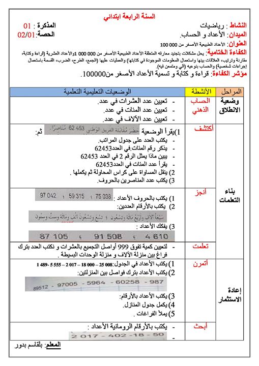 سنة رابعة ابتدائي رياضيات