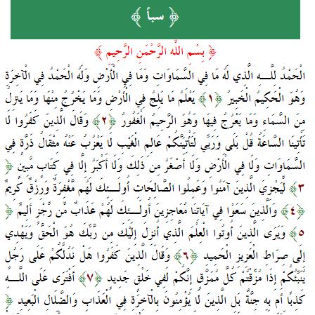 مقتطفات دينية سورة سبأ كاملة مكتوبة